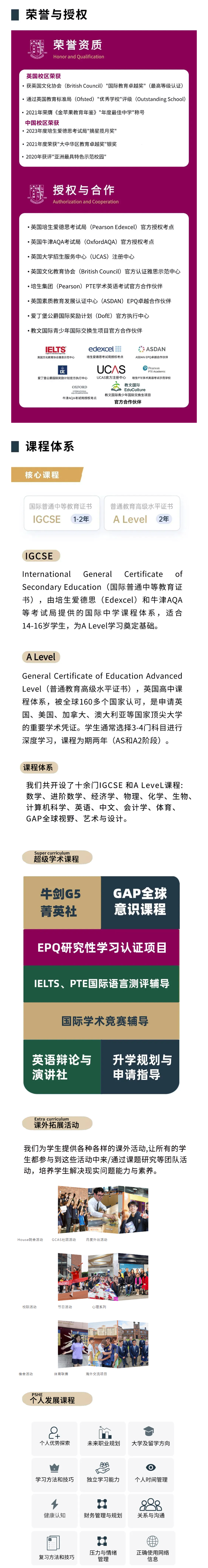 International General Certificate of Secondary Education(國際普通中等教育證書),由培生愛德思(Edexcel)和牛津AQA等考試局提供的國際中學課程體系,適合14-16歲學生,為A Level學習奠定基礎。