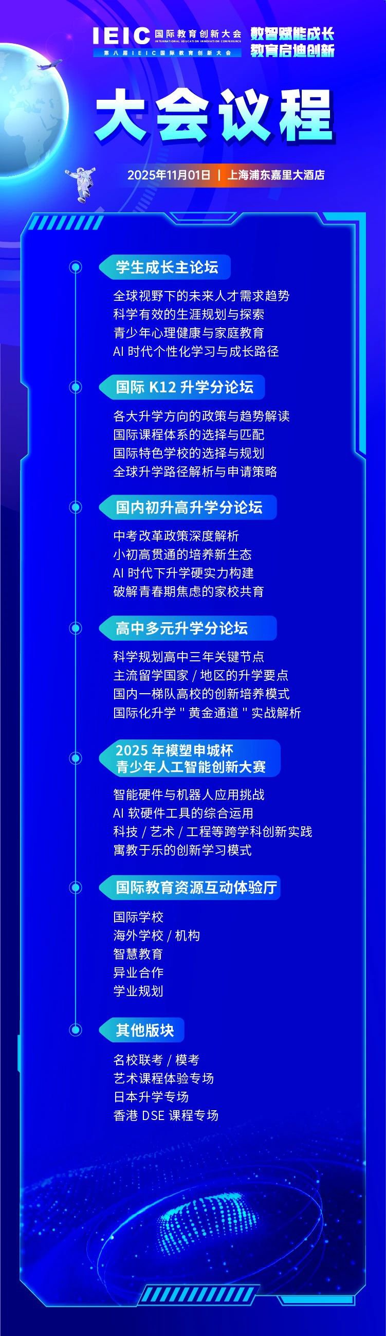 本屆大會以“數智賦能成長,教育啟迪創新”為主題,旨在構建全球前沿智慧、激發創新思維的平臺,現場將匯聚國內外100+位來自教育、科技、文化等領域的專家與學者,圍繞AI賦能高效學習的實踐路徑、國際教育的發展機遇與挑戰、家庭教育與心理健康,以及新時代人才核心素養培育等前沿議題展開深入探討。