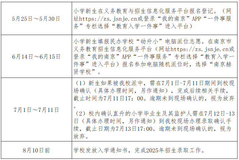 小學新生填報民辦學校“幼升小”電腦派位志愿。在南京市義務(wù)教育招生信息化服務(wù)平臺(網(wǎng)址https://zs.jsnje.cn或登錄“我的南京”APP“一件事服務(wù)”專欄選擇“教育入學一件事”進入平臺)報名參加電腦隨機派位時,選擇“南京赫賢學校“。