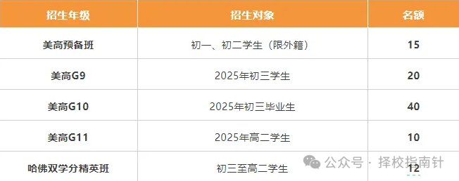 *注:美高預(yù)備班僅限外籍學(xué)生報(bào)考,美高G9-G11以及哈佛雙學(xué)分精英班不限國籍