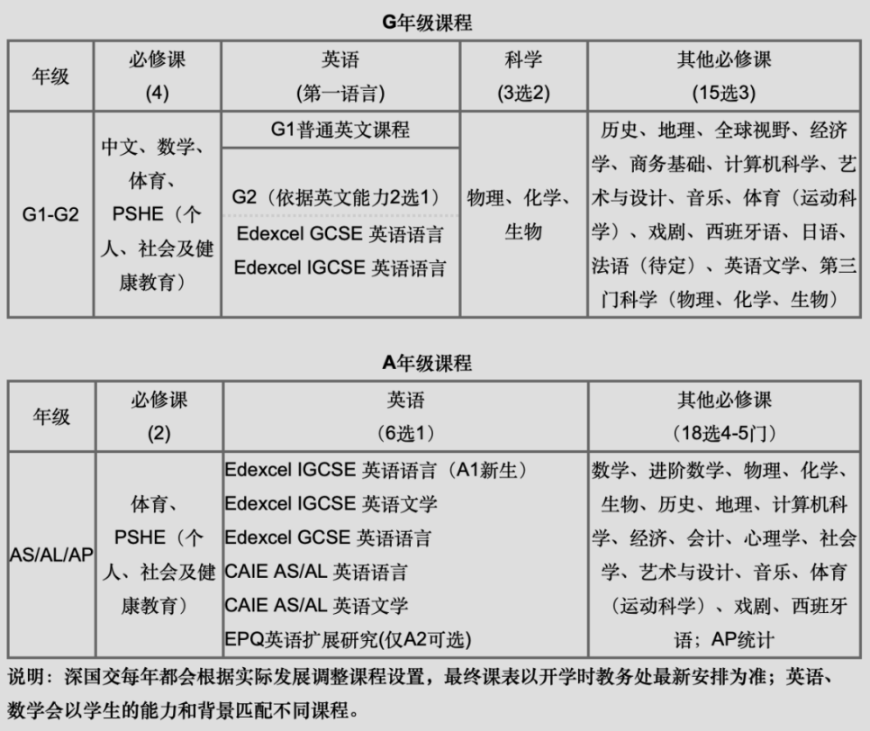 深國交學制共四年,比普通高中多一年,學生完成G1、G2后可自由選擇A-Level或AP路徑,并可跨體系選課,真正實現“一人一課表”。