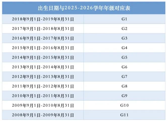 (中小學(xué)入學(xué)年齡對(duì)照表)